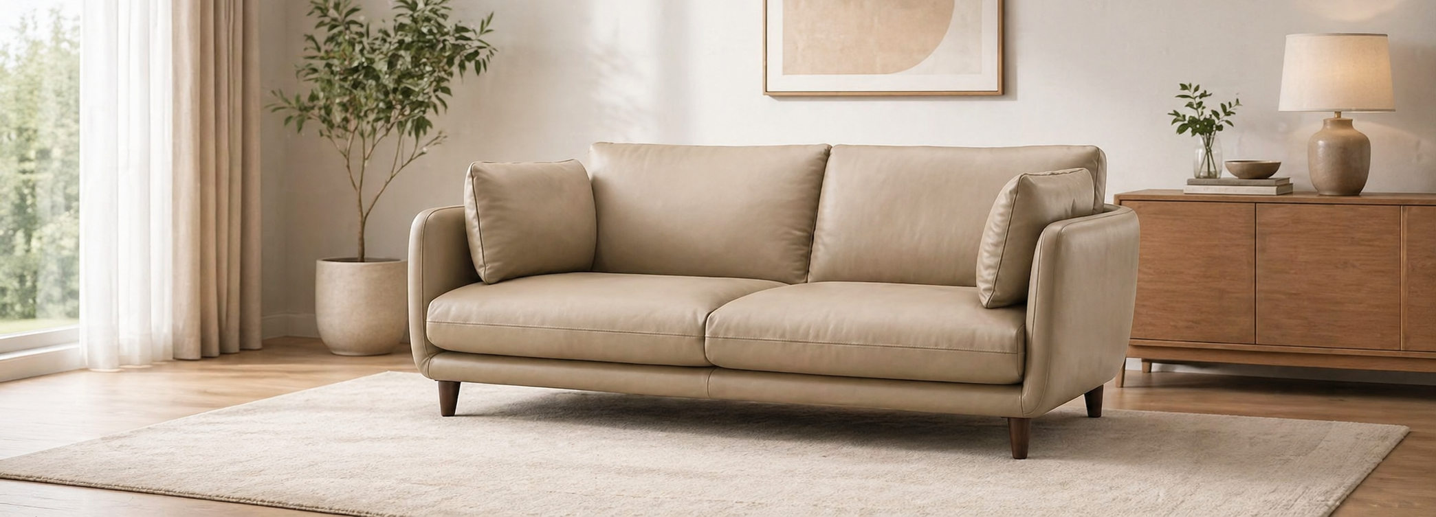Sofa cuero beige moderno 3 plazas